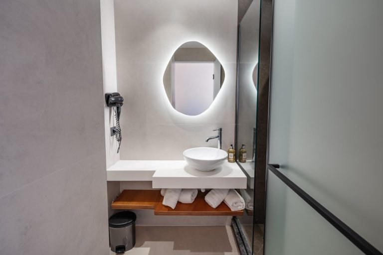 These cozy & restful Deluxe rooms come with a large double bed. Elegantly and minimalist decorated. These magnificent Deluxe rooms offer an amazing view over Pontikonisi island.